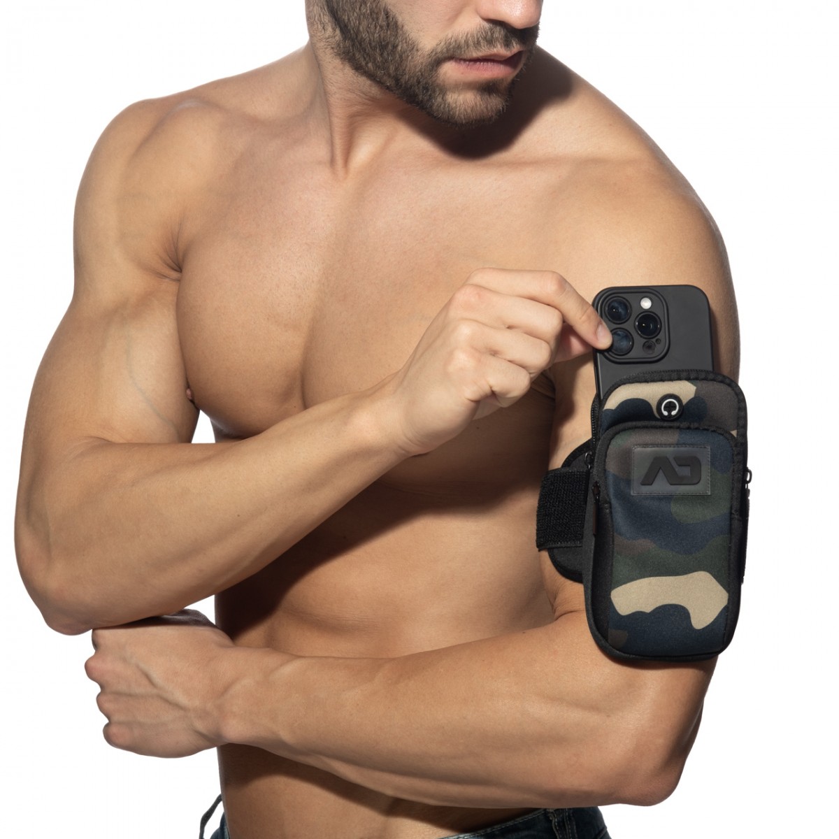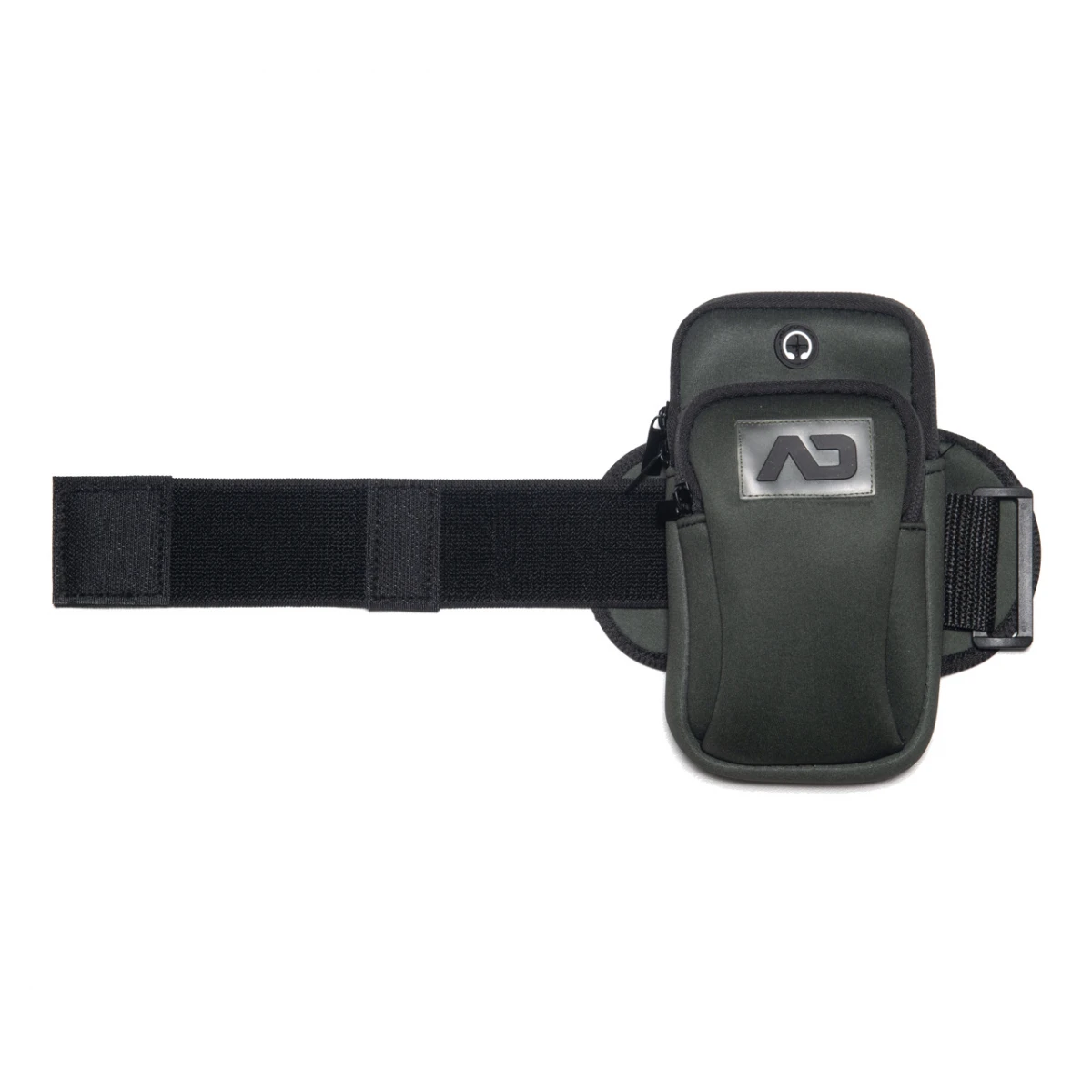 Versatile & durable arm bag for all your valuable items. Fantastic for partying, but can also be used during running; at the gym; outdoor activities; hikes or cycling. Main storage space fits all-sized Smartphones, and includes a dual-zip mechanism and a headphone-cord entrance port. Front storage area with single zip: can be used for cards, money & keys. Rear Velcro adjustable strap to attach to your arm or ankle. Silicone AD logo on front area. Size: approx. 18cm x 10cm x 4cm
